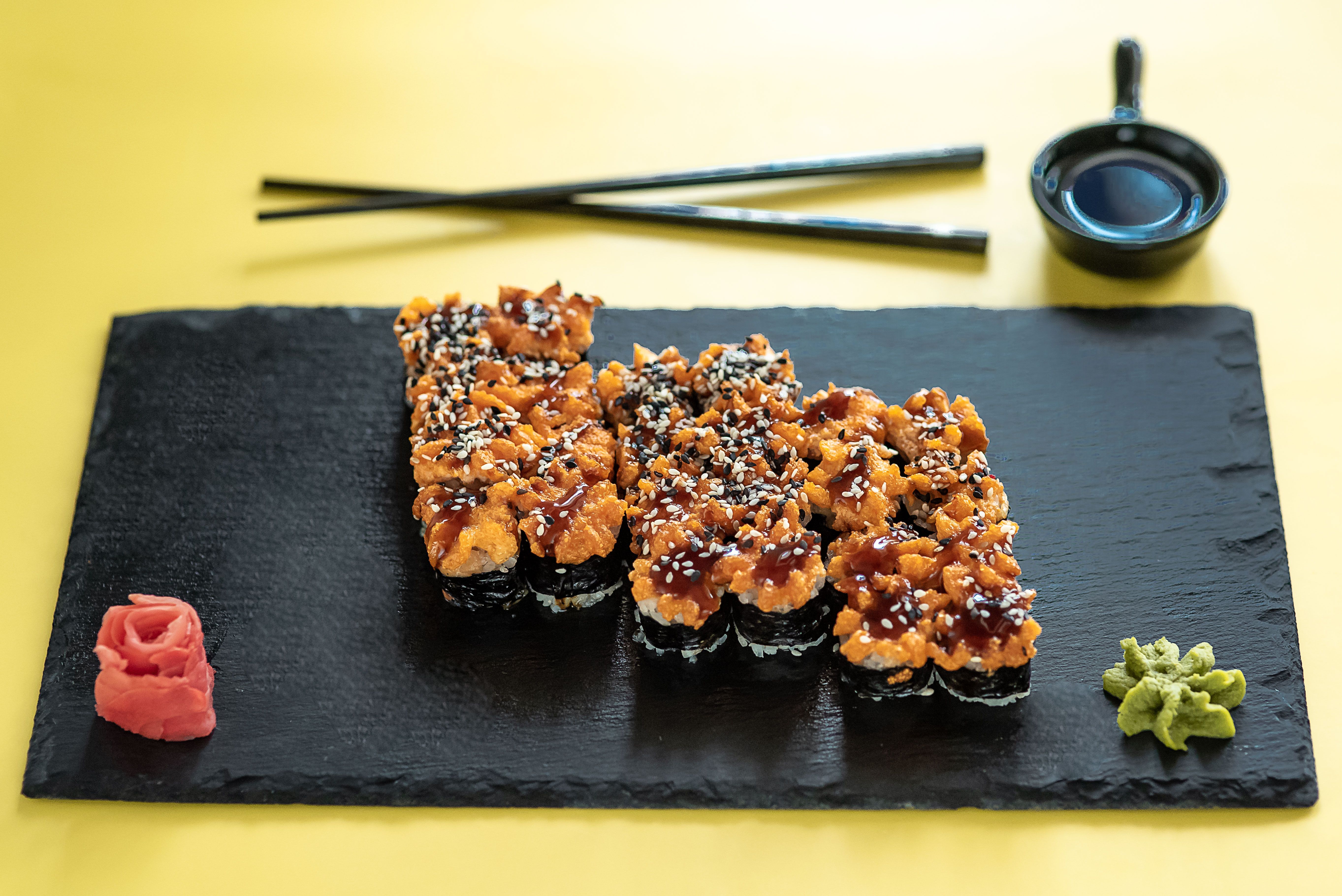 Соевый соус, васаби и имбирь не входят в блюдо и заказываются отдельно :)