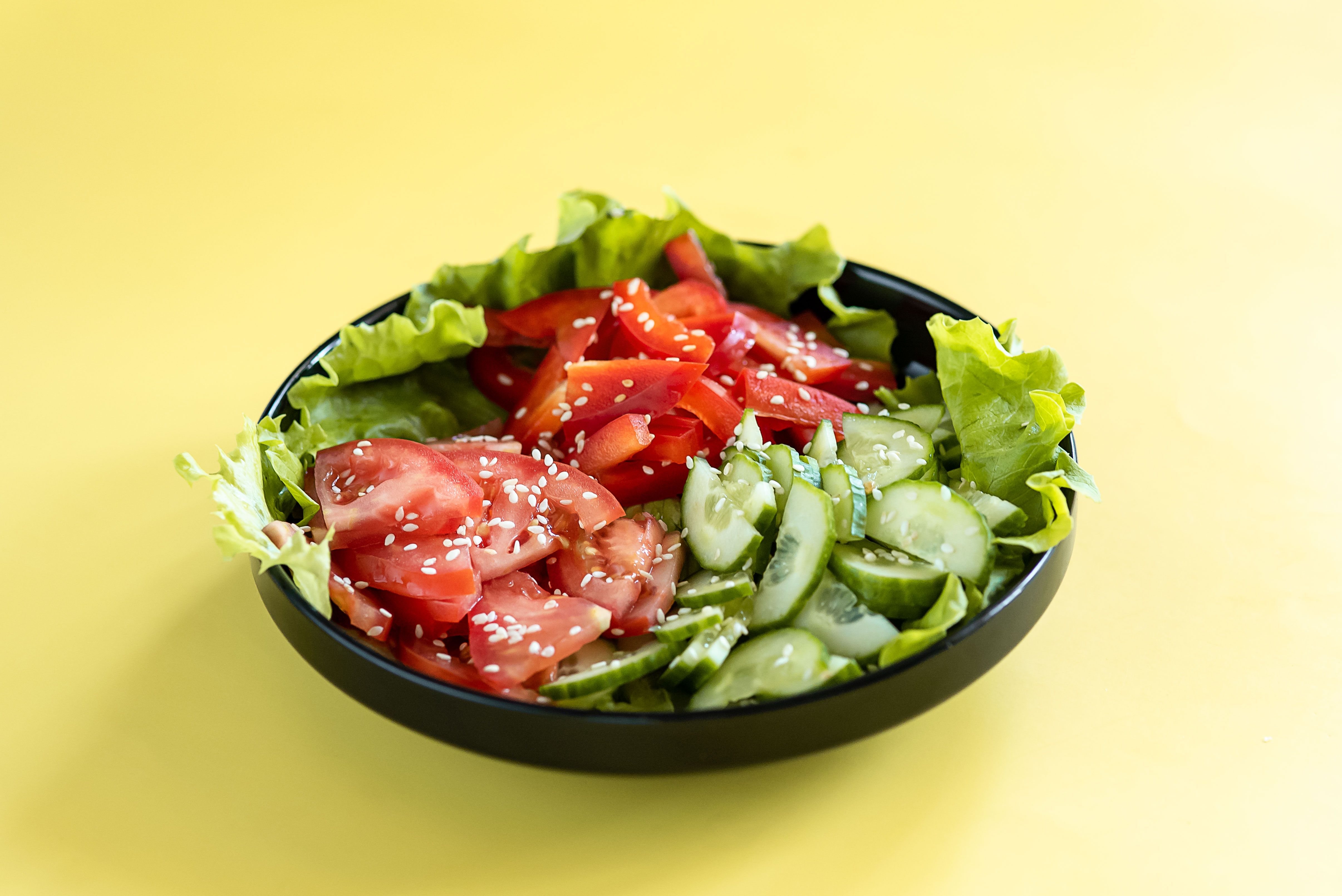 Овощной салат огурец помидоры салат листовой болгарский перец кунжут 200 гр. 279 ₽ Заказать огурец помидоры салат листовой болгарский перец кунжут 200 гр.